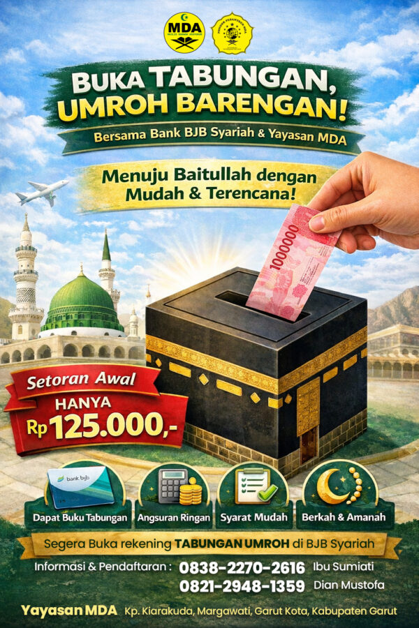 Yayasan MDA (Majlis Dakwah Assyukur) adalah lembaga dakwah dan pendidikan Islam berbasis pesantren yang menghadirkan pembinaan iman, akhlak, dan solusi keagamaan yang dekat, amanah, dan berkelanjutan untuk umat.